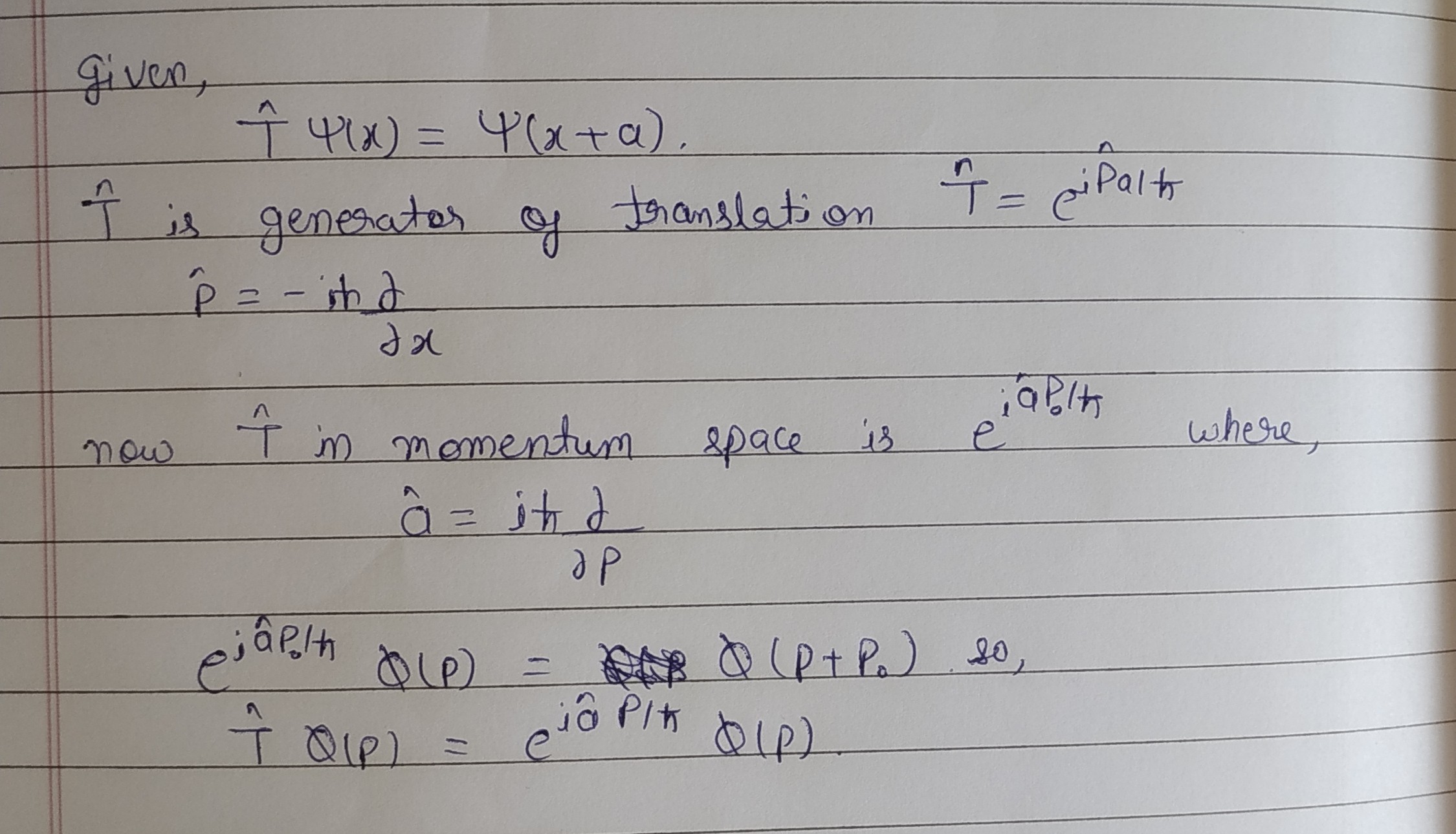 The wavefunction of a particle in one dimension is denoted by \(\psi(x)\) in the coordinate representation and by \(\phi(p) = \int \psi(x)e^{-ipx/h)}dx\) in the momentum representation. If the action of an operator \(\widehat{T}\) on \(\psi(x)\) is given by \(\widehat{T}\psi(x) = \psi(x+a)\), where \(a\) is a constant, then \(\widehat{T}\phi(p)\) is given by