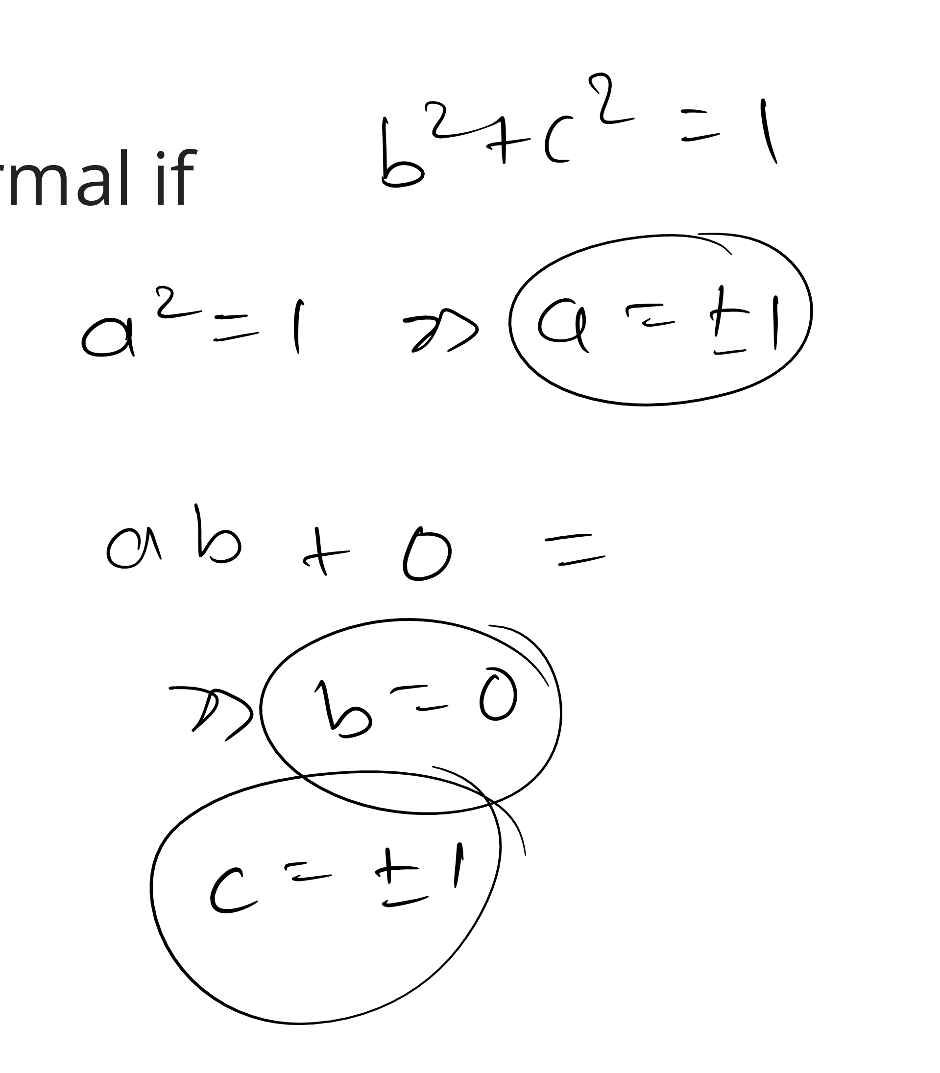 The two vectors \(\begin{pmatrix}a\\0\end{pmatrix}\) and \(\begin{pmatrix}b\\c\end{pmatrix}\) are orthonormal if