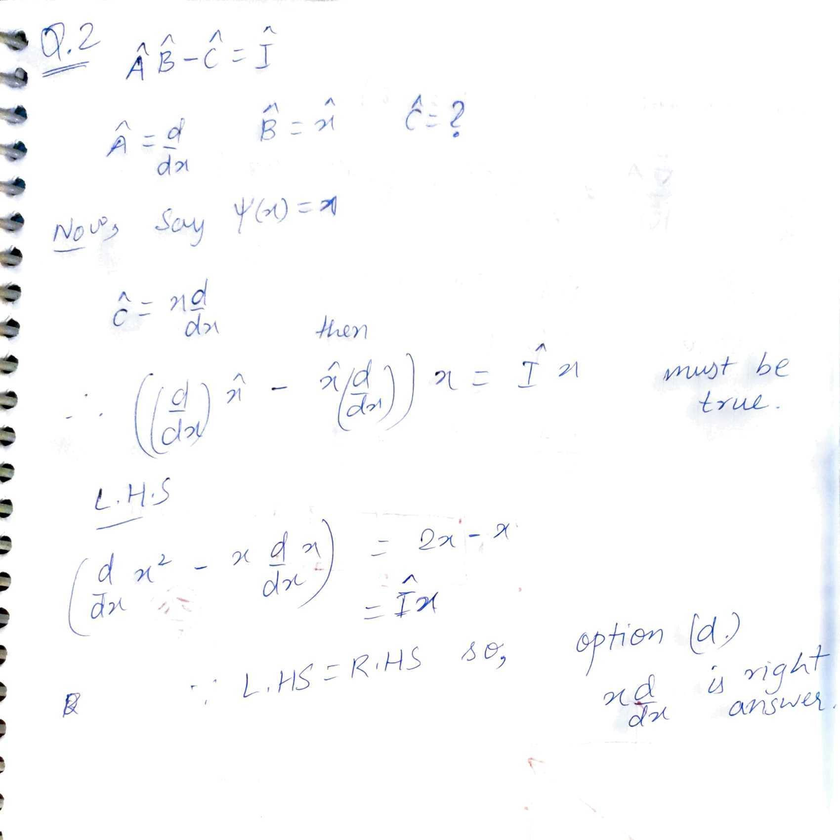 Q NO. 2 solution. In this question, property of commutator is used.