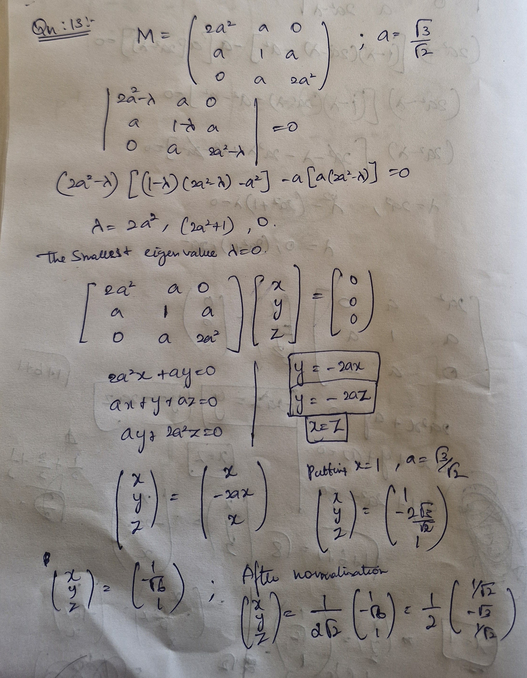 An orthogonal matrix \(O\) which can be diagonalize this matrix by an orthogonal transformation \(O^T MO\) is given by \(O=\)