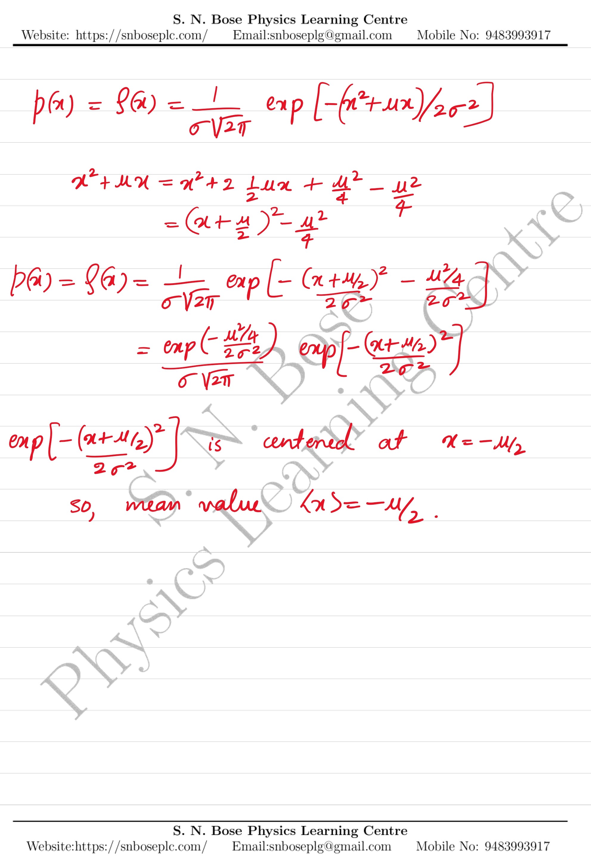 The mean value of random variable \(x\) with probability density \(p(x)=\frac{1}{\sigma \sqrt{2\pi}}\exp{[-(x^2+\mu x)/(2\sigma^2)]}\), is: