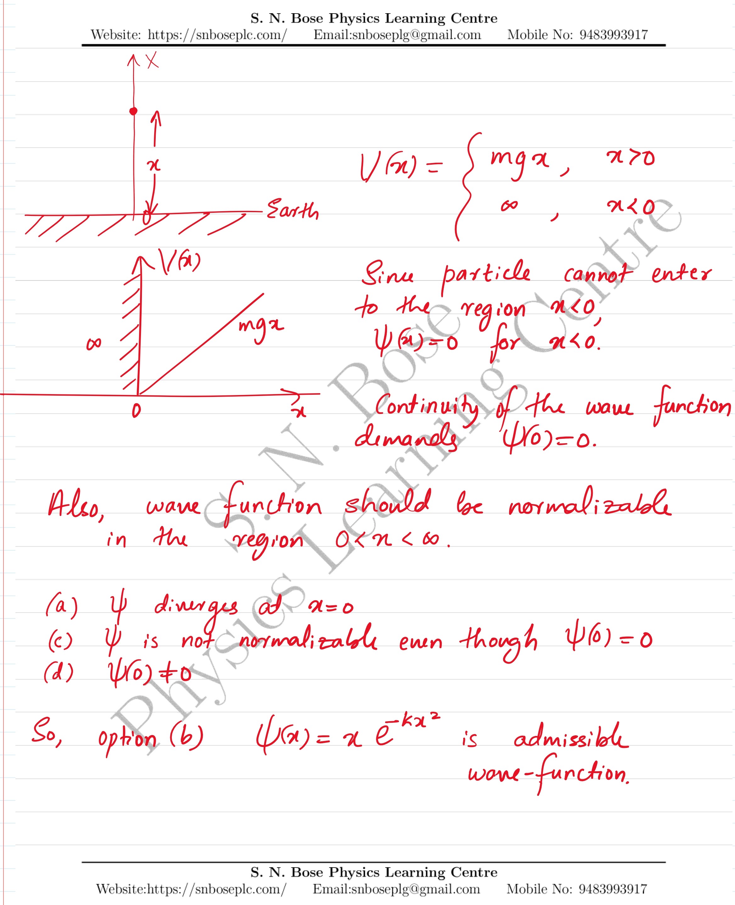 A ball bounces off earth. You are asked to solve this quantum mechanically assuming the earth is an infinitely hard sphere. Consider surface of earth as the origin implying \(V(0)=\propto\) and a linear potential elsewhere (i.e. \(V(x)= mgx\) for \(x>0\)). Which of the following wave functions is physically admissible for this problem (with \(k>0\)):
