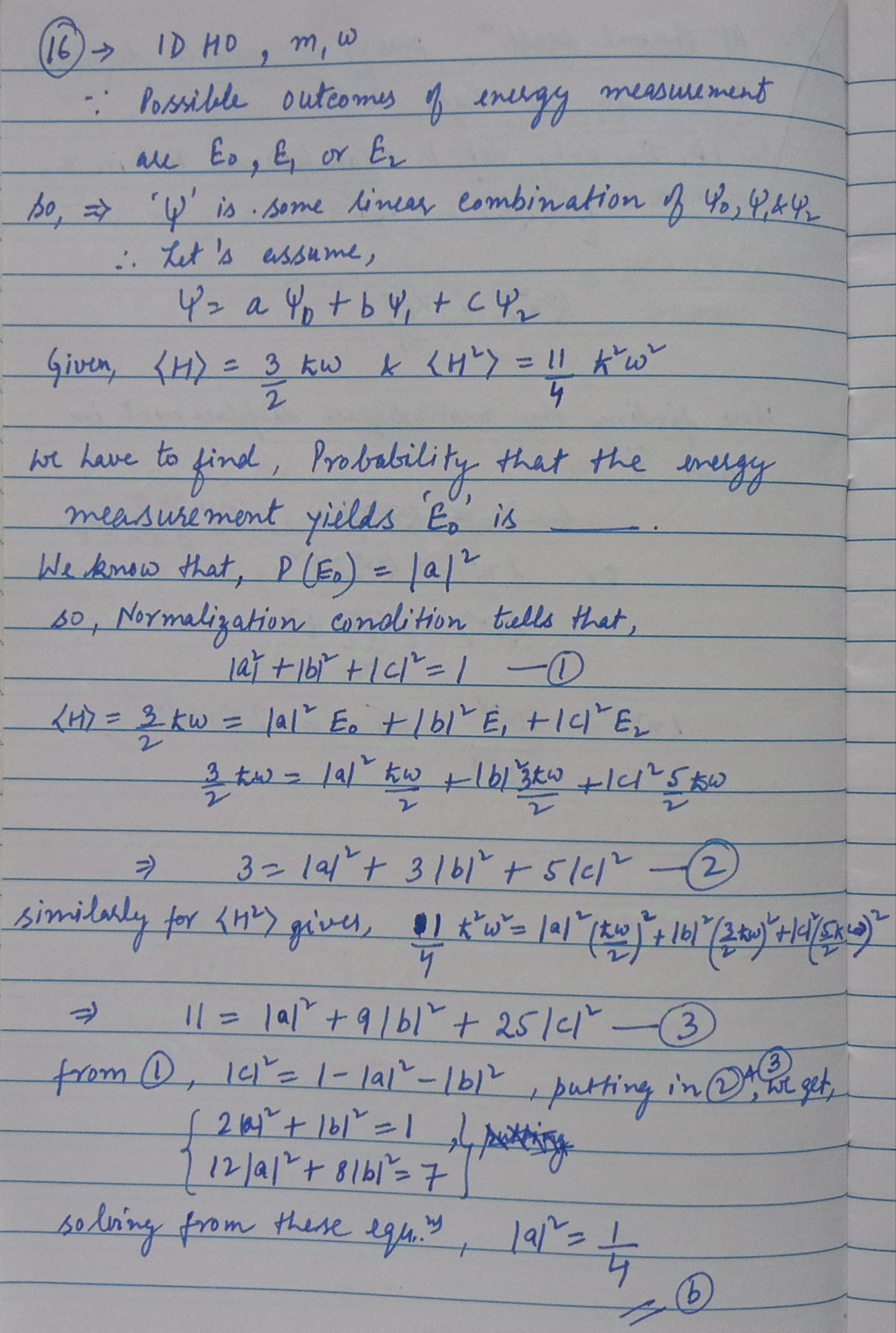 A one dimensional harmonic oscillator (mass \(m\) and frequency \(\omega\)) is in a state \(\psi\) such that the only possible outcomes of an energy measurement are \(E_0, E_1\) or \(E_2\), where \(E_n\) is the energy of the \(n\)-th excited state. If \(H\) is the Hamiltonian of the oscillator, \(\langle \psi|H|\psi\rangle=3\hbar \omega/2\) and \(\langle \psi|H^2|\psi\rangle=11\hbar^2\omega^2/4\), then the probability that the energy measurement yields \(E_0\) is