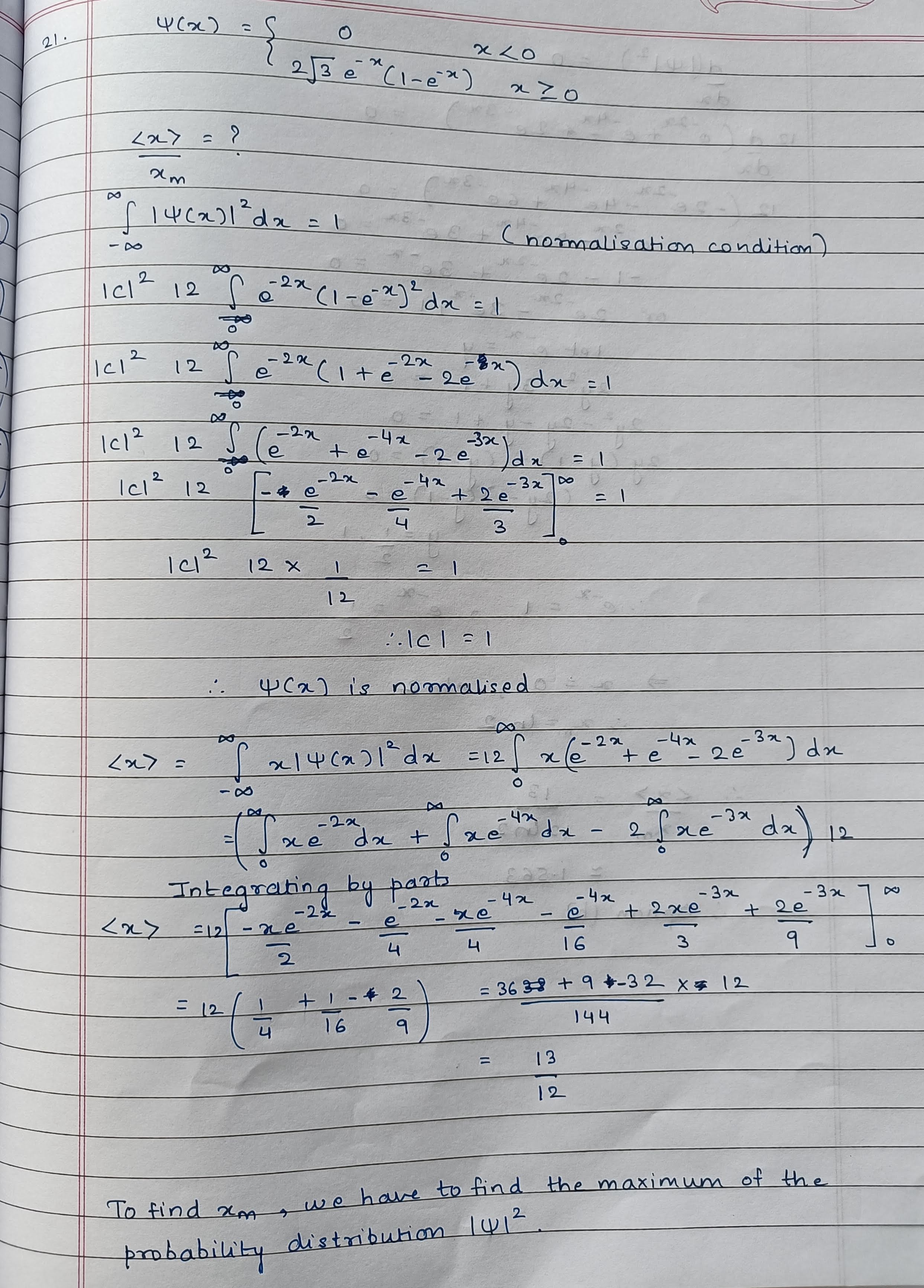 A particle moving in one dimension has the wave function