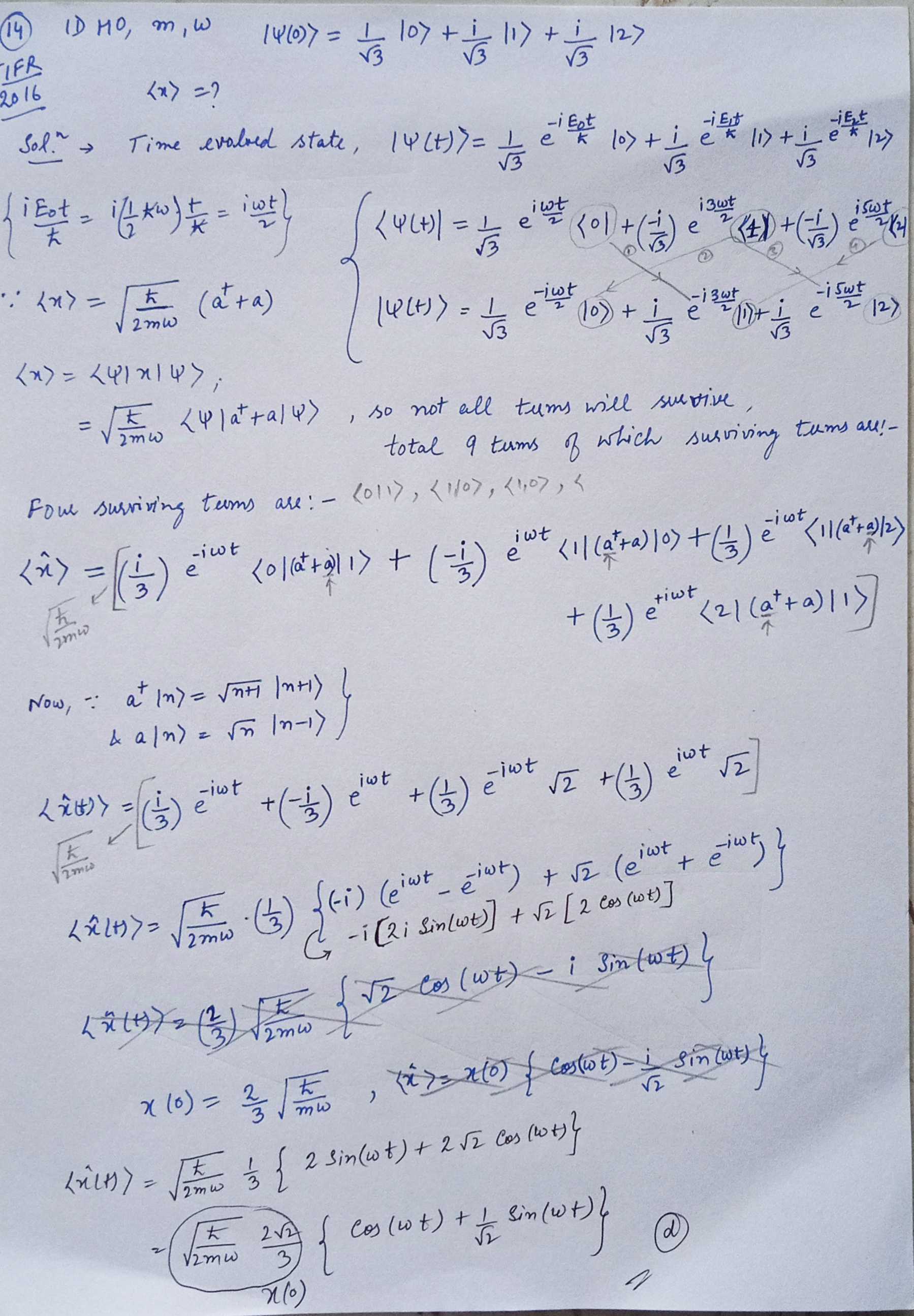 2) \(\langle x(t)\rangle = \sqrt{\frac{\hbar}{m\omega}}\,\sin \omega t,\ \langle p(t)\rangle = 0\)