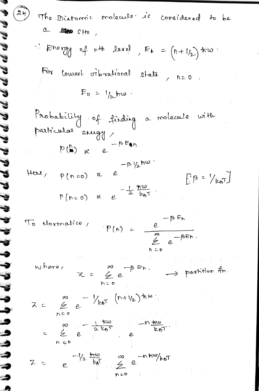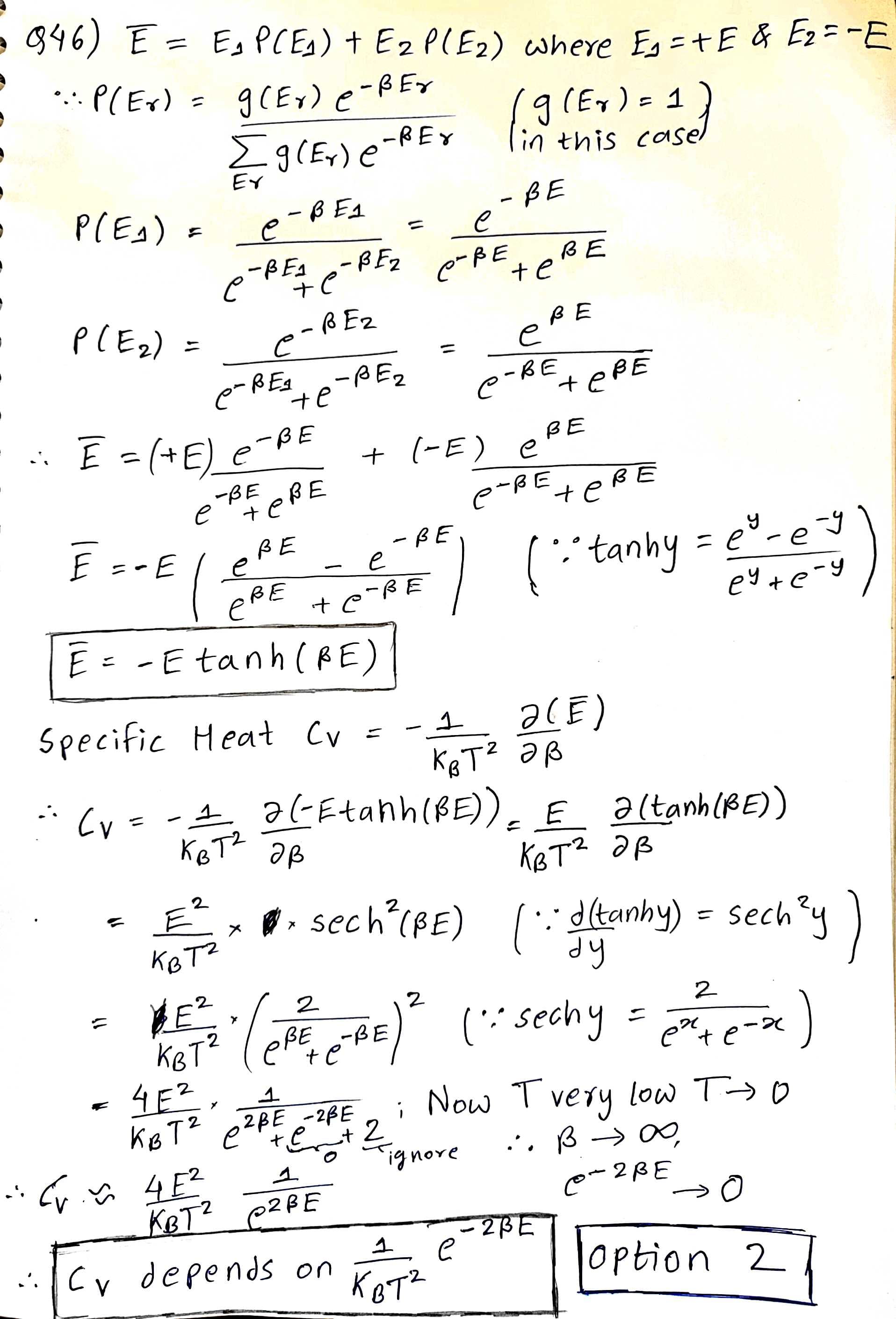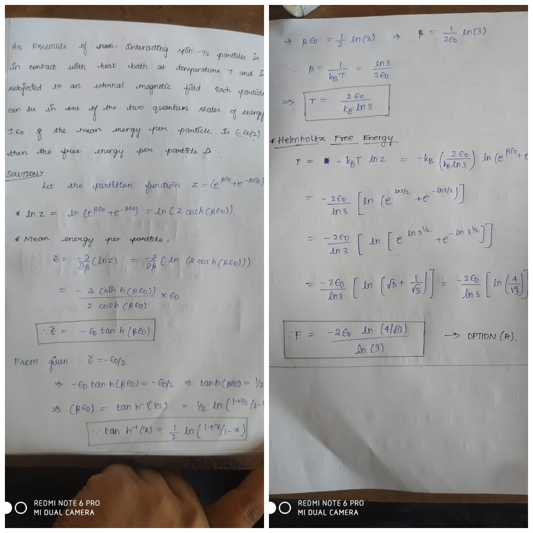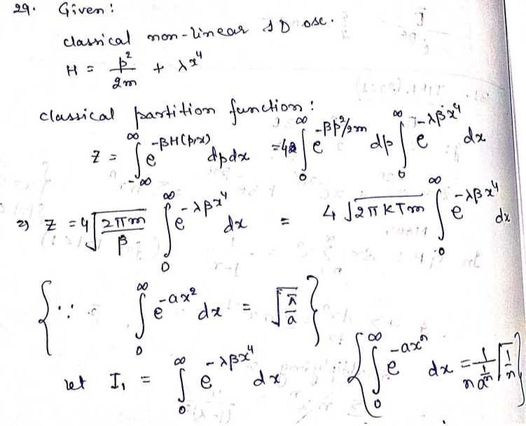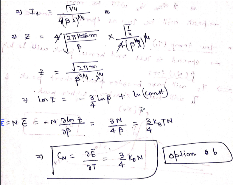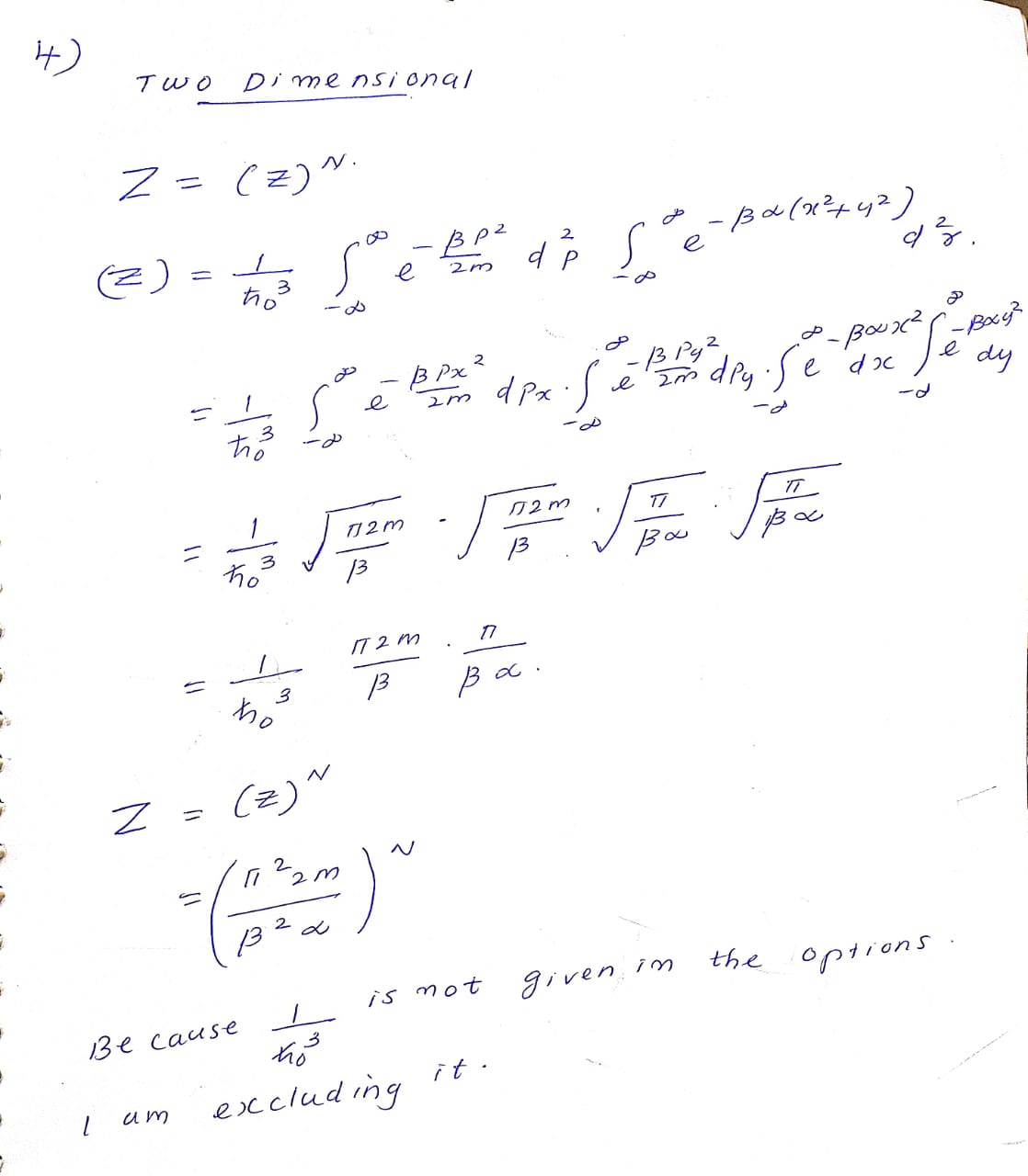 particles, each of mass \(m\) is in a two dimensional harmonic potential of the form \(V(r) = \alpha (x^2 + y^2)\) where \(\alpha\) is a positive constant. The canonical partition function of the system at temperature \(T\) is \(\bigg(\beta = \frac{1}{k_{B^{T}}}\bigg):\)