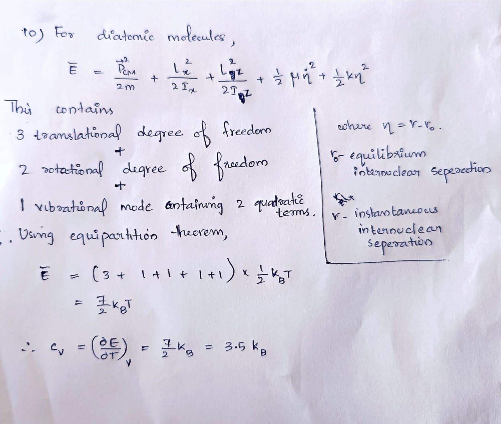 The specific heat per molecule of a gas of diatomic molecules at high temperatures is