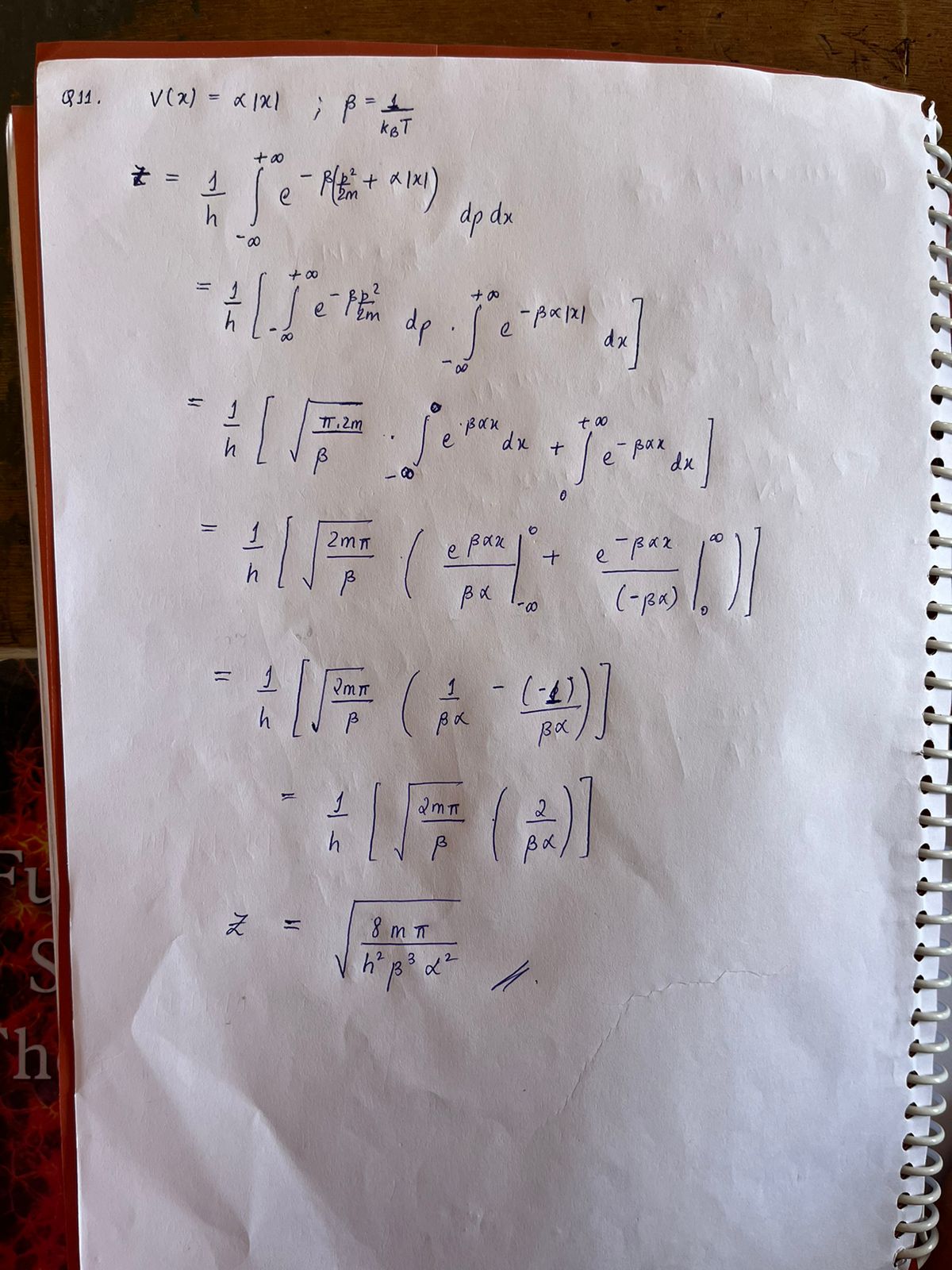 A gas of non-relativistic classical particles in one dimension is subjected to a potential \(V(x)=\alpha |x|\) (where \(\alpha\) is a constant). The partition function is (\(\beta=\frac{1}{k_B T}\))
