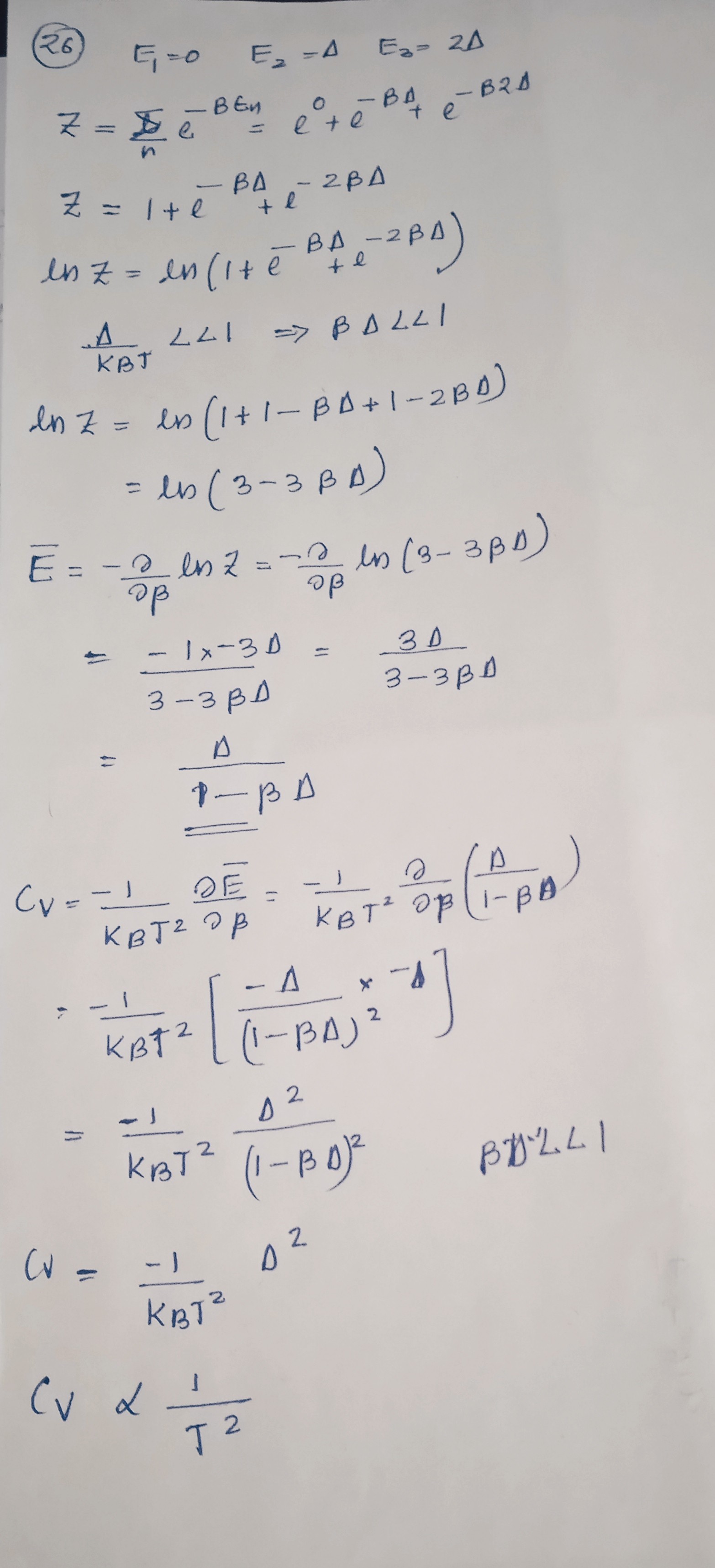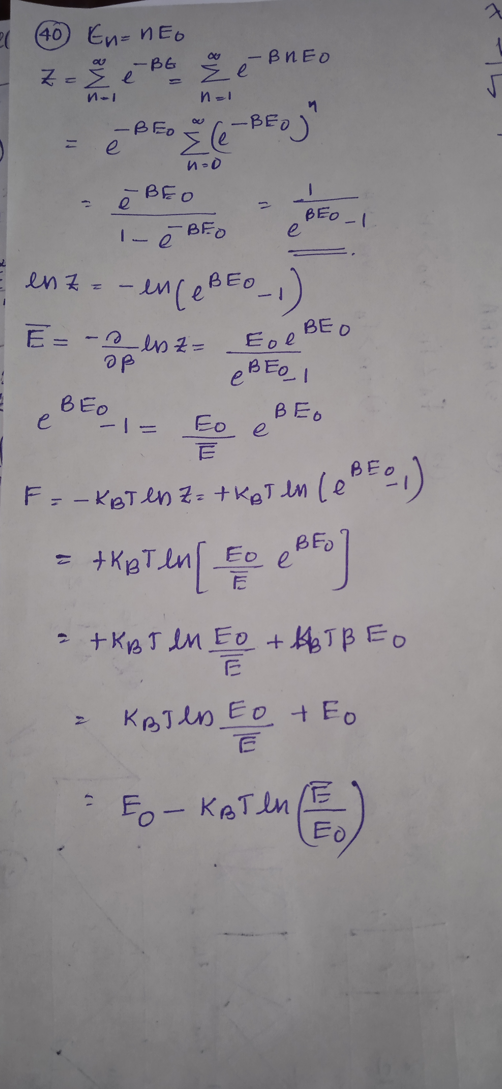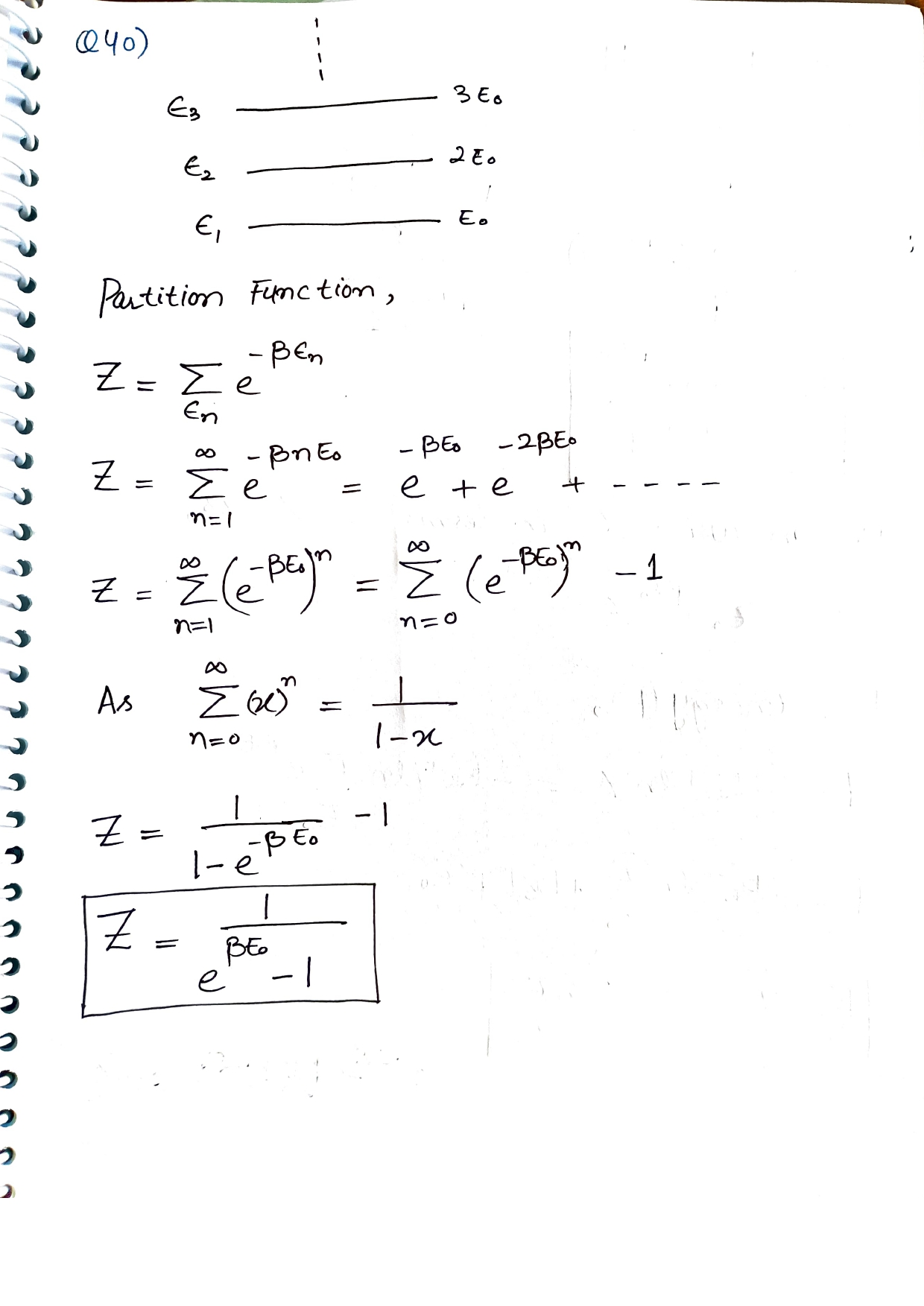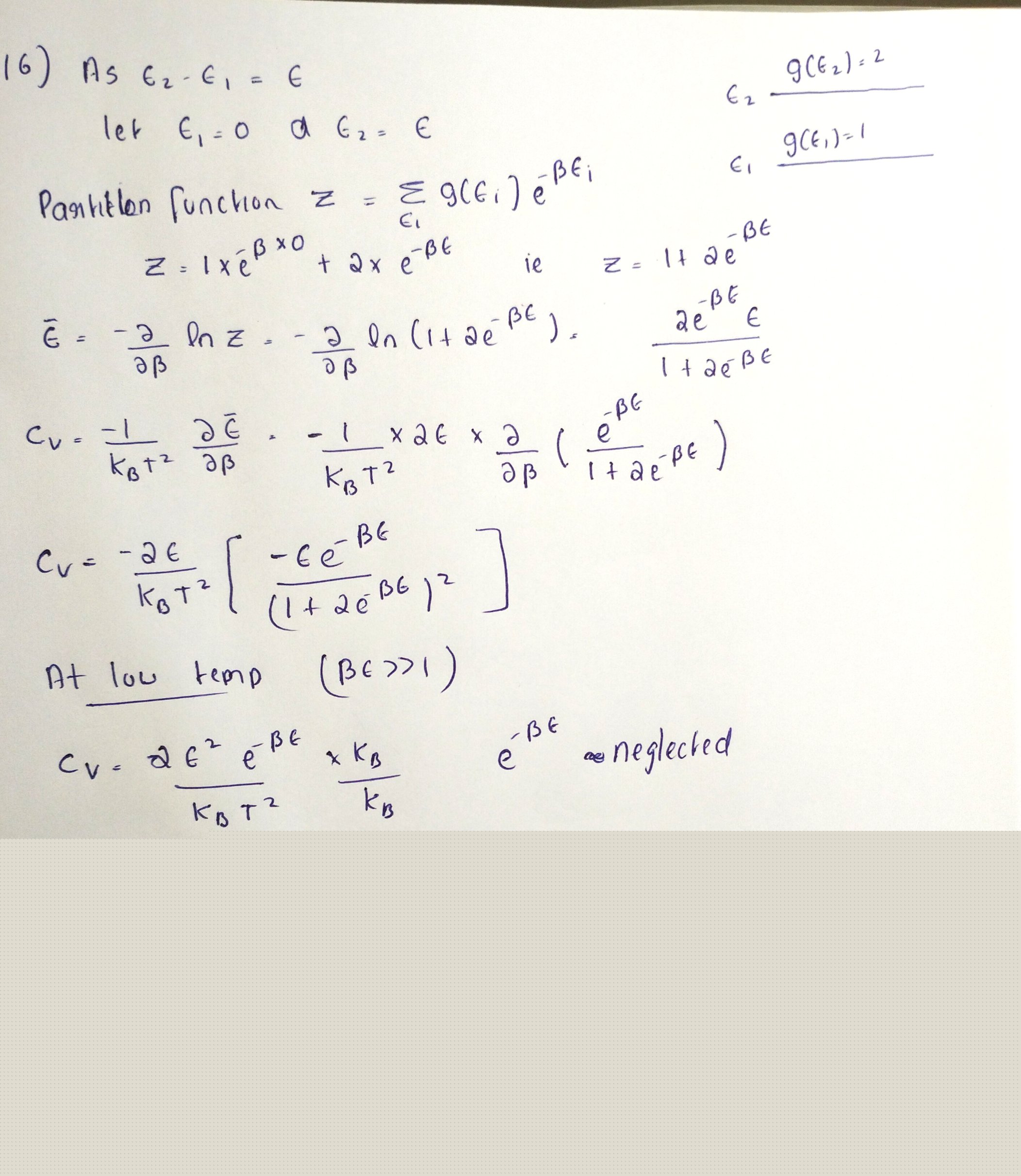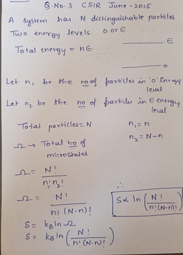 each of which can be in one of the two energy levels 0 and \(\in\), has a total energy \(n\in\), where \(n\) is an integer. The entropy of the system is proportional to