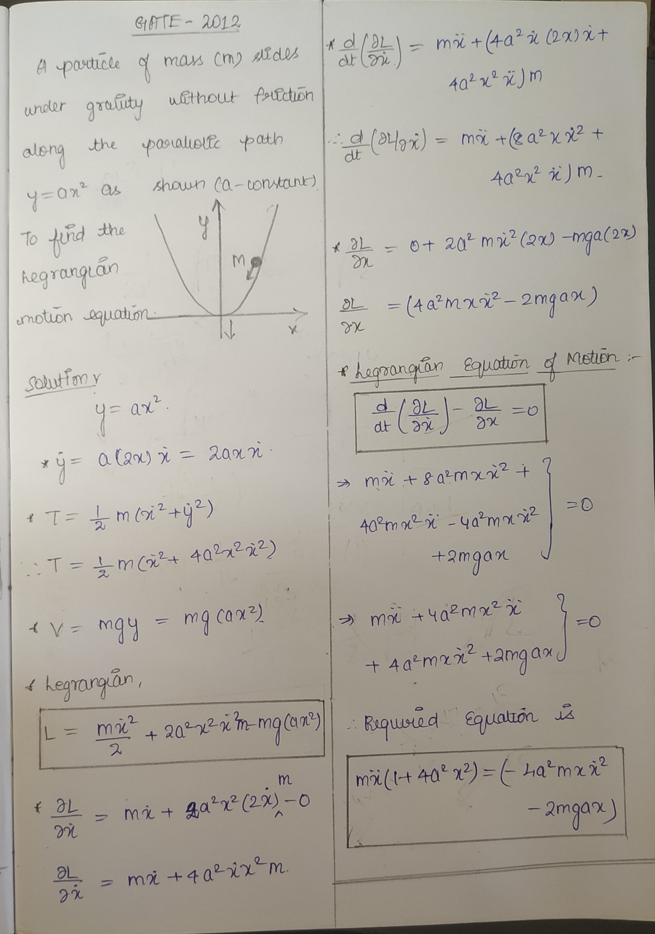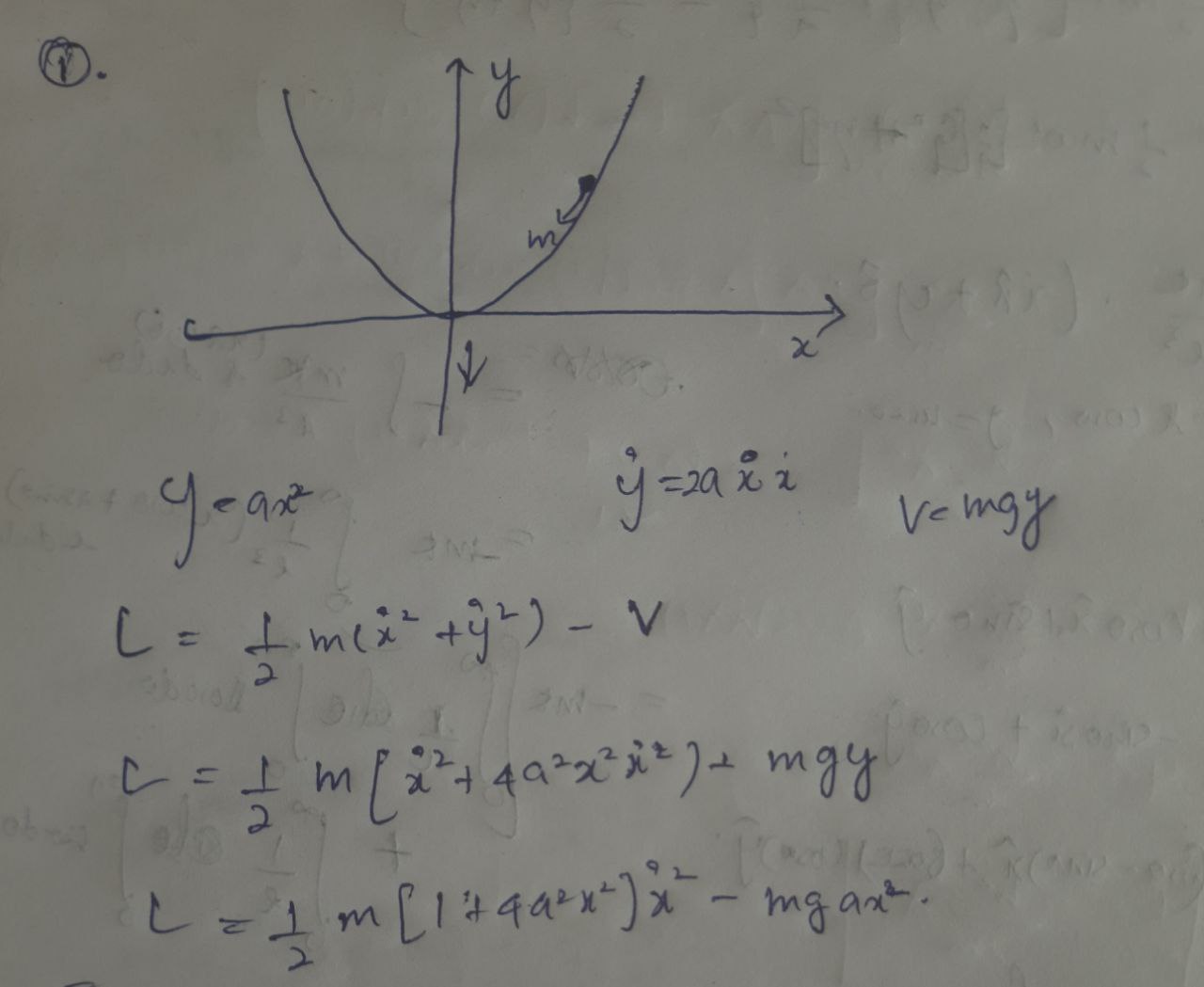 \(m(1+4a^2 x^2)\ddot{x}=2mgax+4ma^2 x\dot{x}^2\)