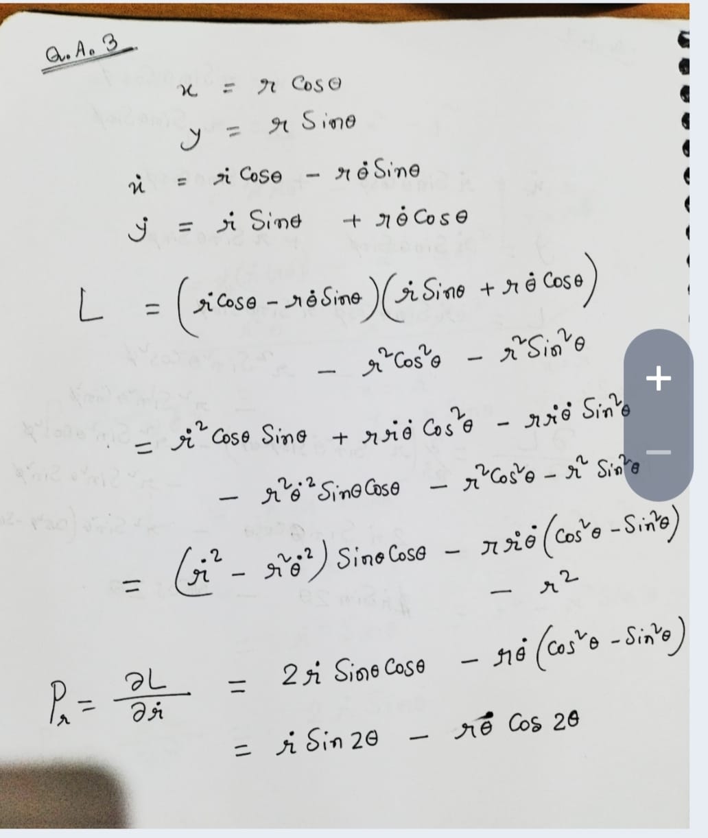 \(\dot{r} \sin{2\theta}+r\dot{\theta} \cos{2\theta}\)