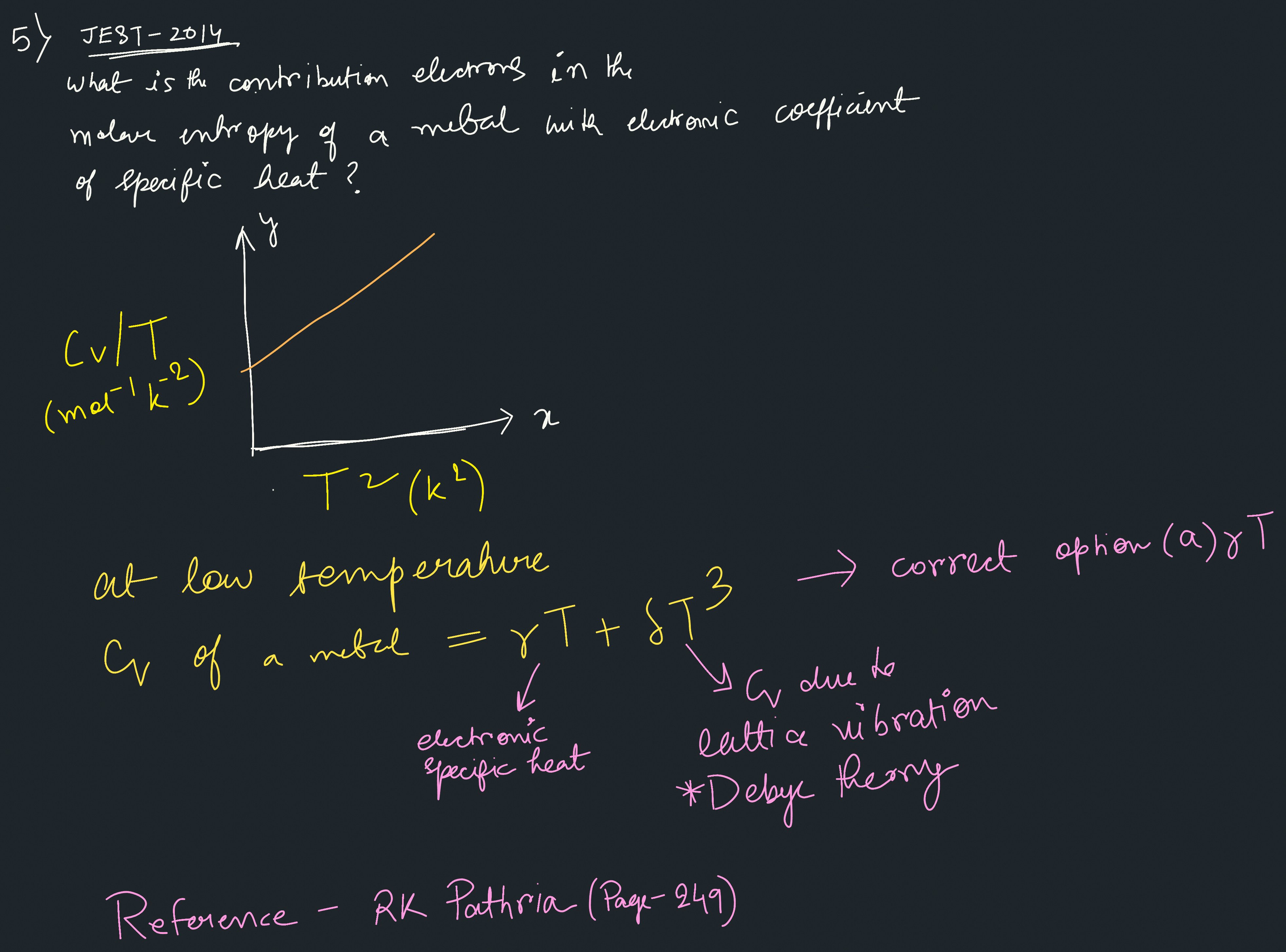 What is the contribution of the conduction electrons in the molar entropy of a metal with electronic coefficient of specific heat?