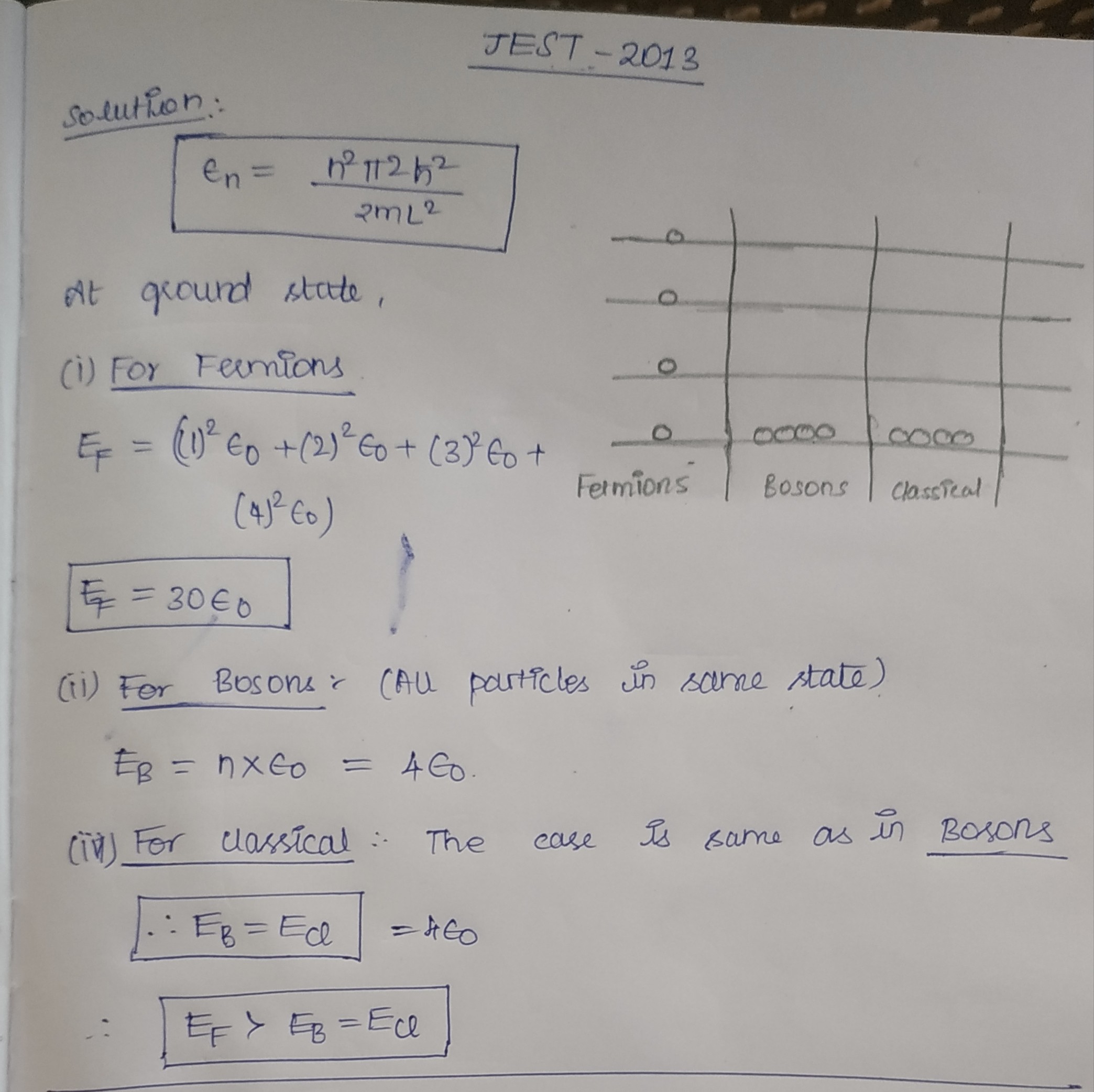 For non-interacting Fermions in \(d\)-dimensions, the density of states \(D(E)\) varies as \(E^{\left(\frac{d}{2}-1\right)}\). The Fermi energy \(E_F\) of an \(N\) particle system in \(3\)-, \(2\)- and \(1\)-dimensions will scale respectively as,