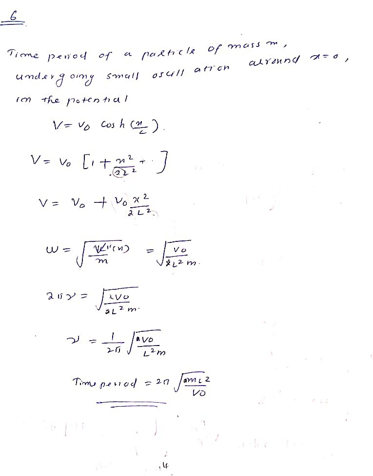 The time period of a particle of mass \(m\), undergoing small oscillations around \(x=0\), in the potential \(V=V_0\cosh{\left(\frac{x}{L}\right)}\), is