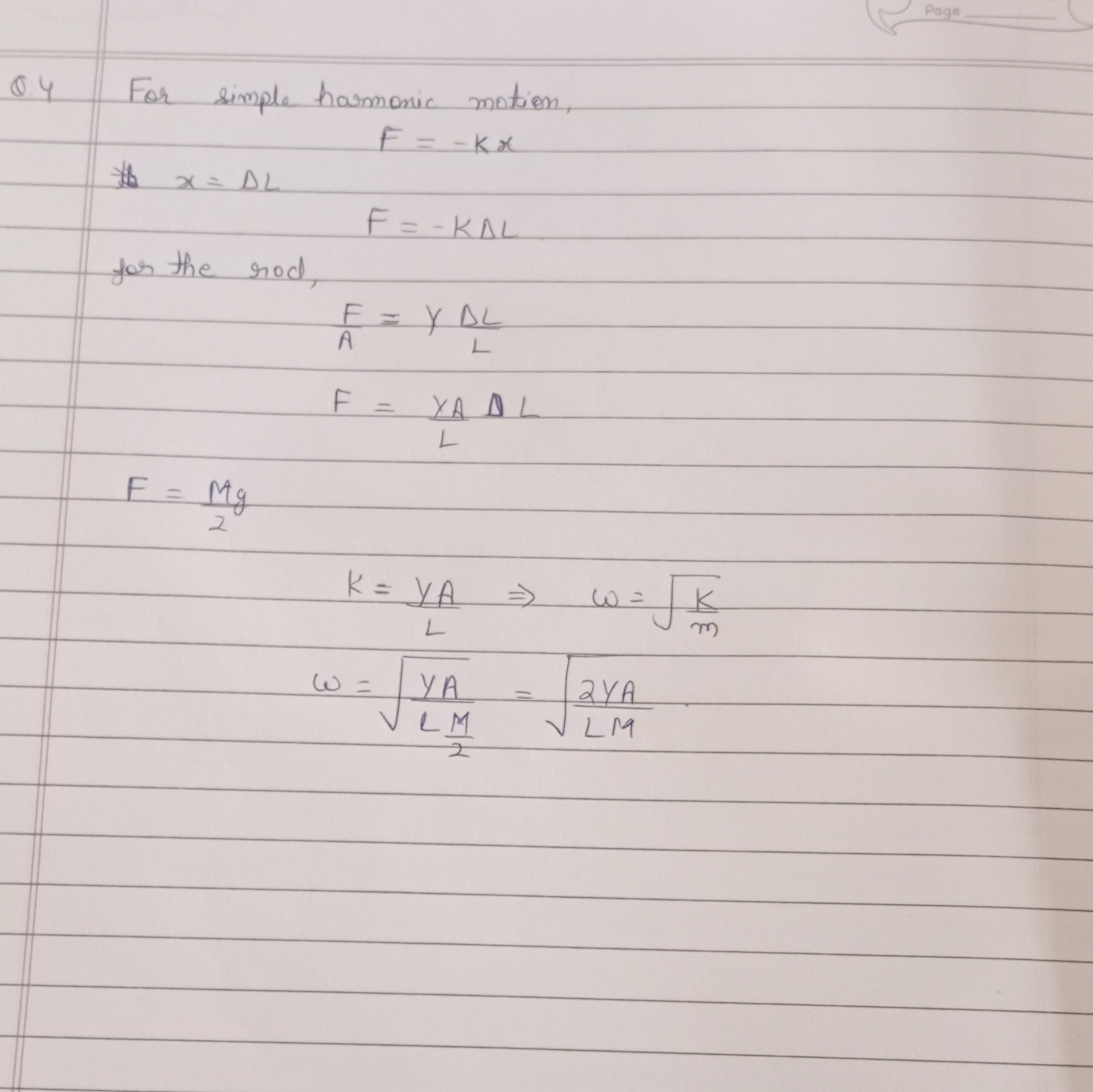 A solid vertical rod, of length \(L\) and cross-sectional area \(A\), is made of a material of Young's modulus \(Y\). The rod is loaded with a mass \(M\), and, as a result, extends by a small amount \(\Delta L\) in the equilibrium condition. The mass is then suddenly reduced to \(M/2\). As a result the rod will undergo longitudinal oscillation with an angular frequency
