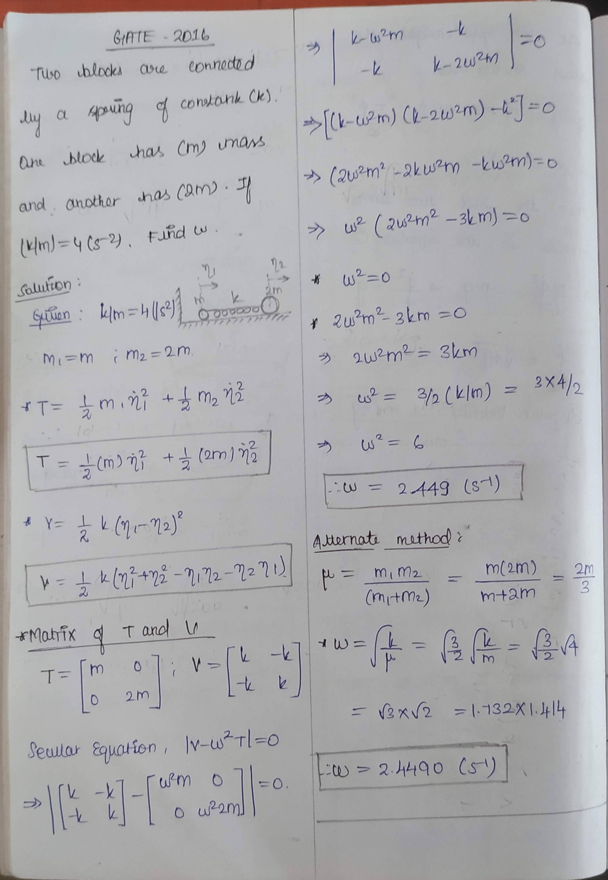 (3) \(\sqrt{\frac{5k}{2m}}, \sqrt{\frac{k}{m}}\)